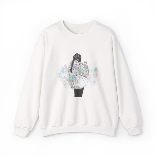 Cozy Girl Illustration Crewneck Sweatshirt — Pink Brushstroke Comfort
